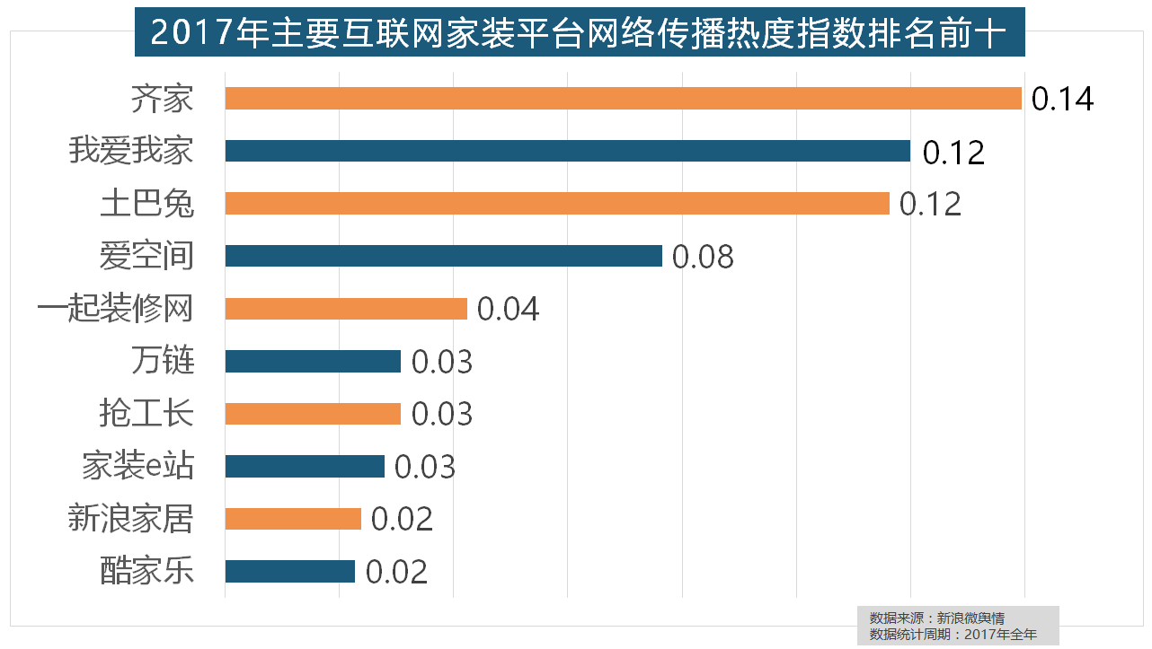 除各保守家拆设想企业逐鹿我国度拆市场外,近年来,一众互联网家拆平台也前来分一杯羹。据新浪微舆情对我国次要互联网家拆平台大数据阐发显示,齐家、我爱我家、土巴兔、爱空间、一路拆修网的收集热度指数排名前五,万链、抢工长、家拆e坐、新浪家居、酷家乐正在年度互联网家拆平台热度榜上排名第六到第十位。